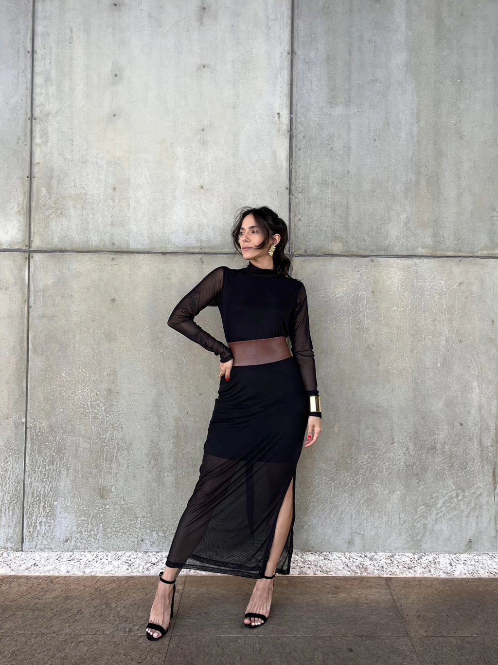 O vestido tule é a tradução perfeita de elegância e leveza em uma só peça. Ele possui shape levemente ajustado que valoriza as formas com sutileza e conforto. O forro interno garante cobertura na medida certa, preservando a transparência delicada e o movimento característico do tule. Com gola alta e mangas longas, o vestido traz um ar sofisticado e atemporal, ideal para composições que pedem um toque refinado. O comprimento midi reforça sua proposta elegante e versátil — perfeito tanto para ocasiões especiais quanto para produções contemporâneas. É uma peça que une feminilidade e estilo de forma natural, proporcionando conforto, fluidez e presença em cada detalhe.